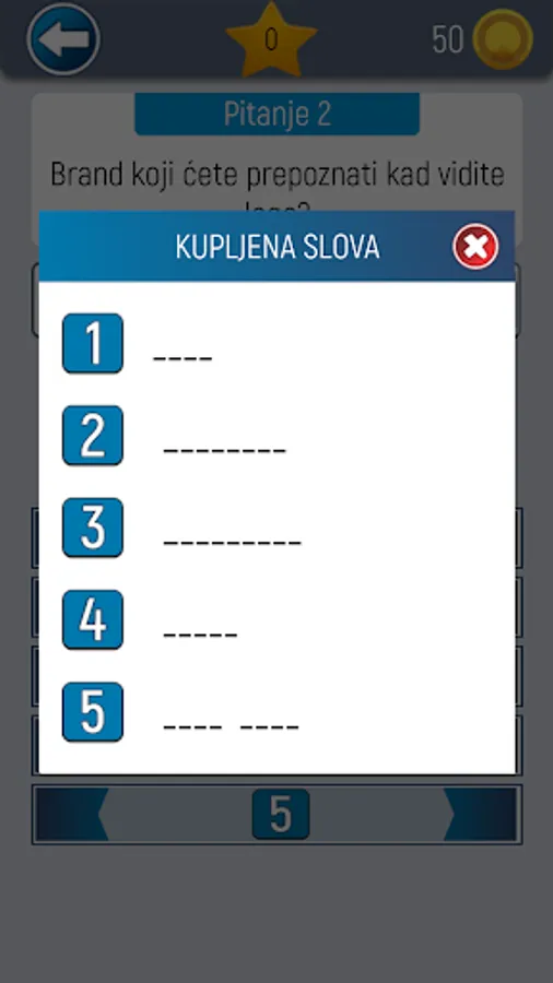 Each question has five possible answers that the player has to hit. Answers are formed on the basis of the most common responses from 100 people who raised the question. Player confronting questions by what he first comes to mind. If a player can not guess all the answers, quiz offers the possibility of several types of assistance that will help him to solve all the answers to this question.