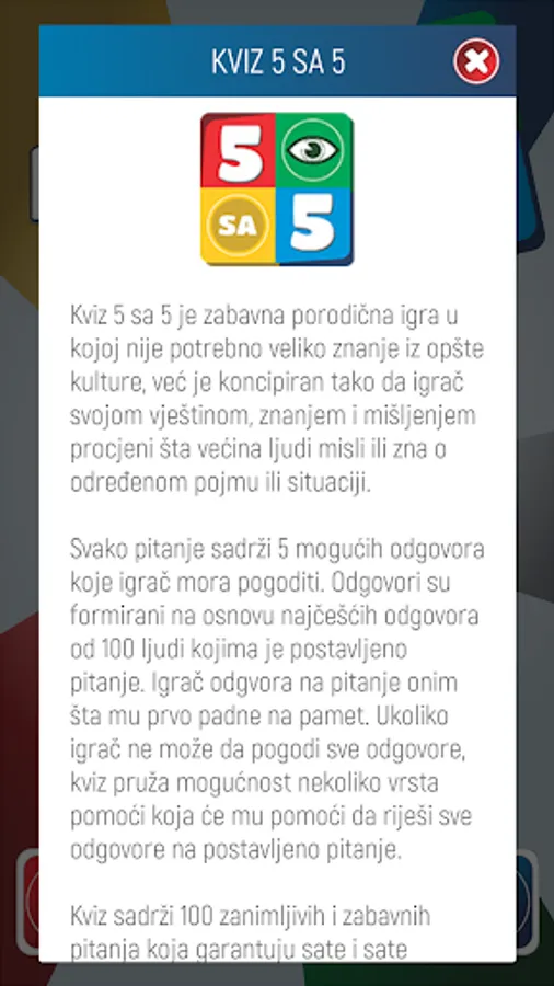 Quiz 5 5 is a fun family game where not need extensive knowledge of general culture, but is designed so that the player with his skill, knowledge and opinion assessment of what most people think or know about a particular concept or situation.
