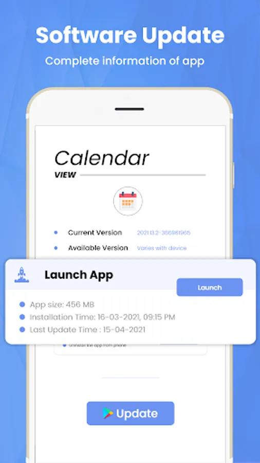 If you want to upgrade your android mobile daily. No problem, through this software update app you can update all your android apps directly without opening the play store. Update your smartphone by scanning and updating all applications free. With an update scanner, find your software updates via the android phone update checker application. Through fast updates checker app for all android phone keep your mobile up to date. Check the daily usage of all android applications on your cellphone. Monitor all apps, check which app is launched last time and how much time is spent on the last launched app with the Phone software updater app. Auto-update android software application allows you to sit back and offers you the experience of automatic android software updating functions. Updating the software of your android device and android applications will keep it up to date helps to improve the performance and efficiency of your phone system. The update software scans all the application from internal storage and external storage (SD card), then show you the list of apps pending for updates.