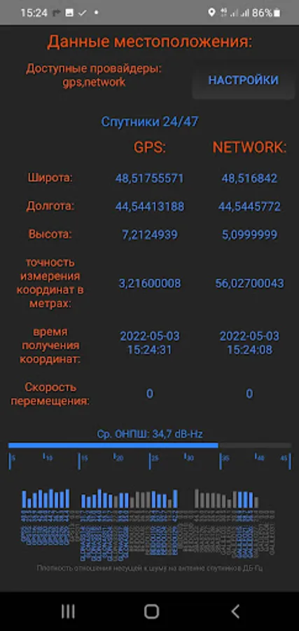 And thus, on one screen, compare the difference in location accuracy from two providers. Network provider and GPS provider.