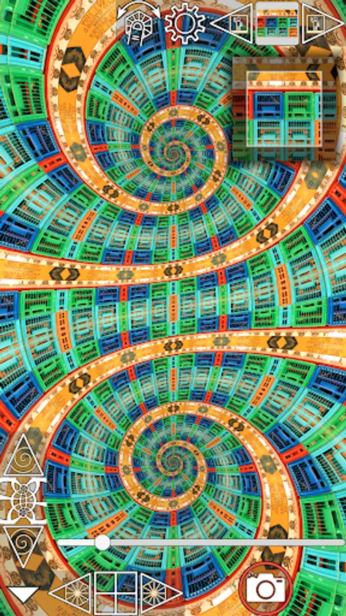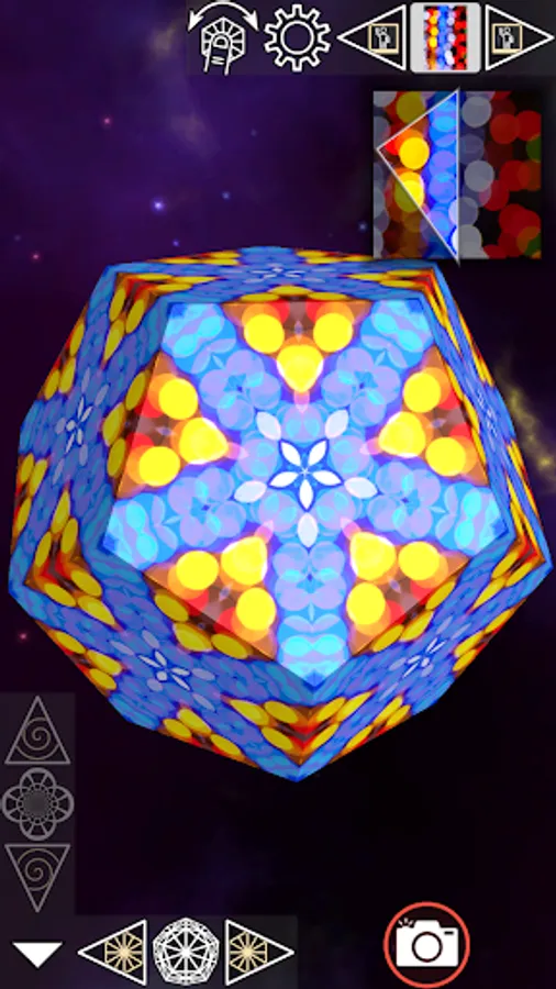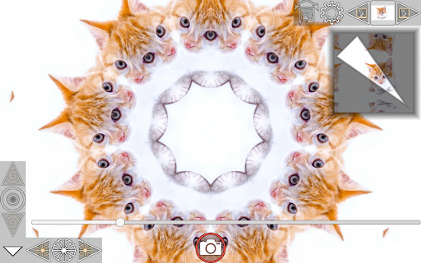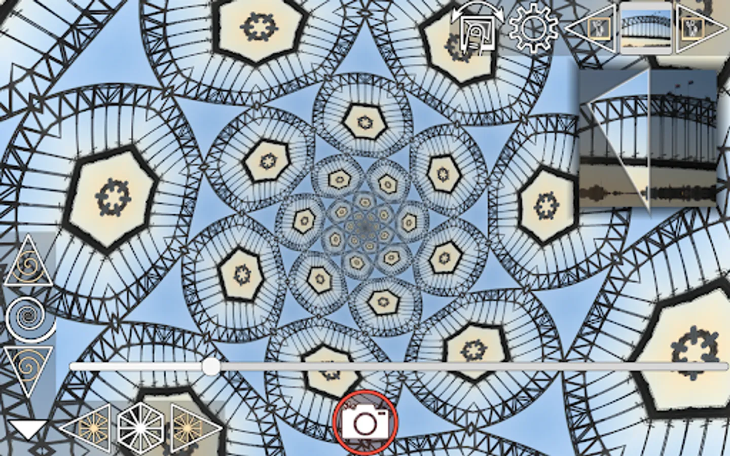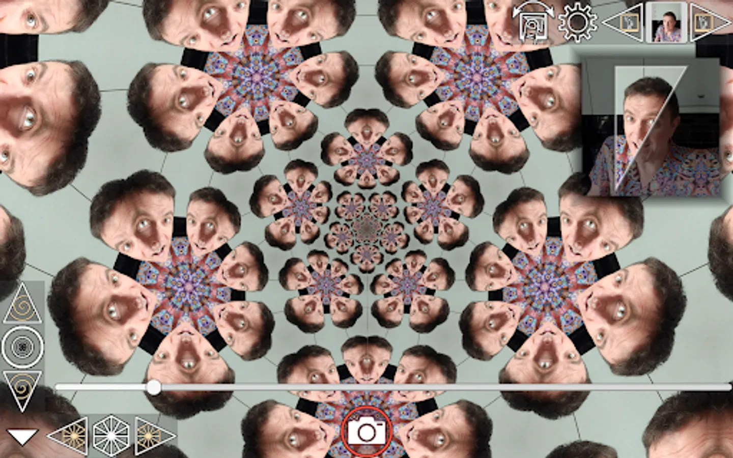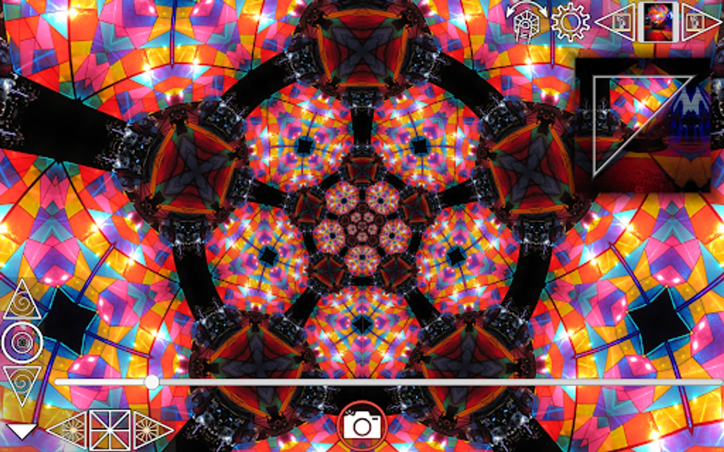 • Choose from dozens of kaleidoscopic patterns. Radial, periodic, Droste, 3D and more.