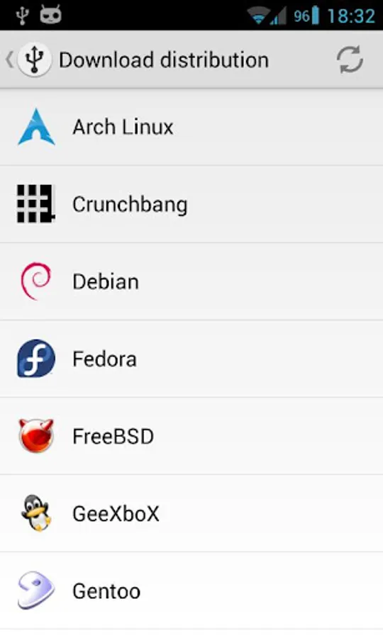 DriveDroid also includes a convenient download menu where you can download USB-images of a number of operating systems from your phone (like Mint, Ubuntu, Fedora, OpenSUSE and Arch Linux). Around 35 different systems are available at this moment.