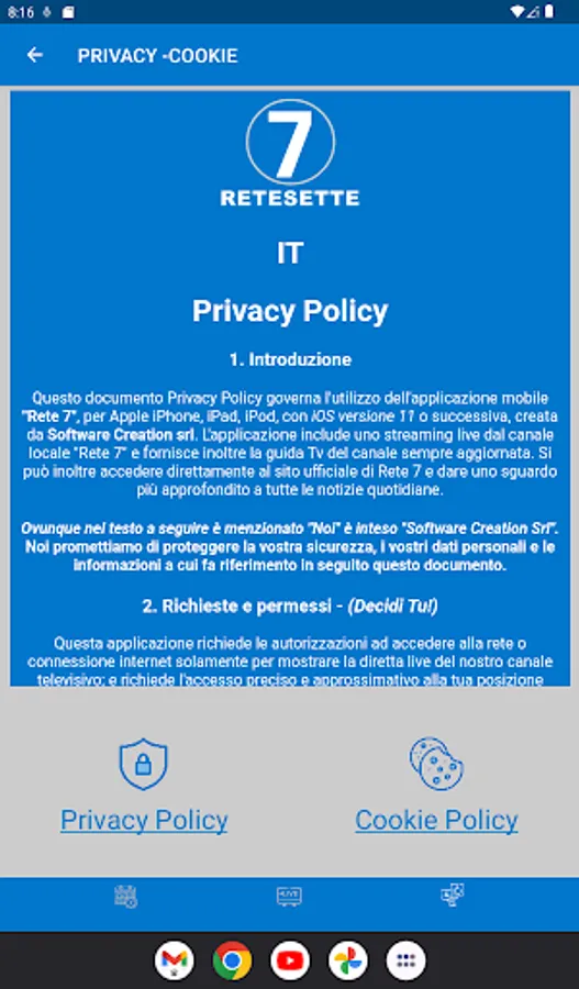 Rete 7 is an Italian television broadcaster. Based in Turin, it covers Piedmont and the Aosta Valley through the Digital Terrestrial channel 13. Its contents are also offered on the web. The history of this local TV began in 1977 with a different name than the one we know it by today.