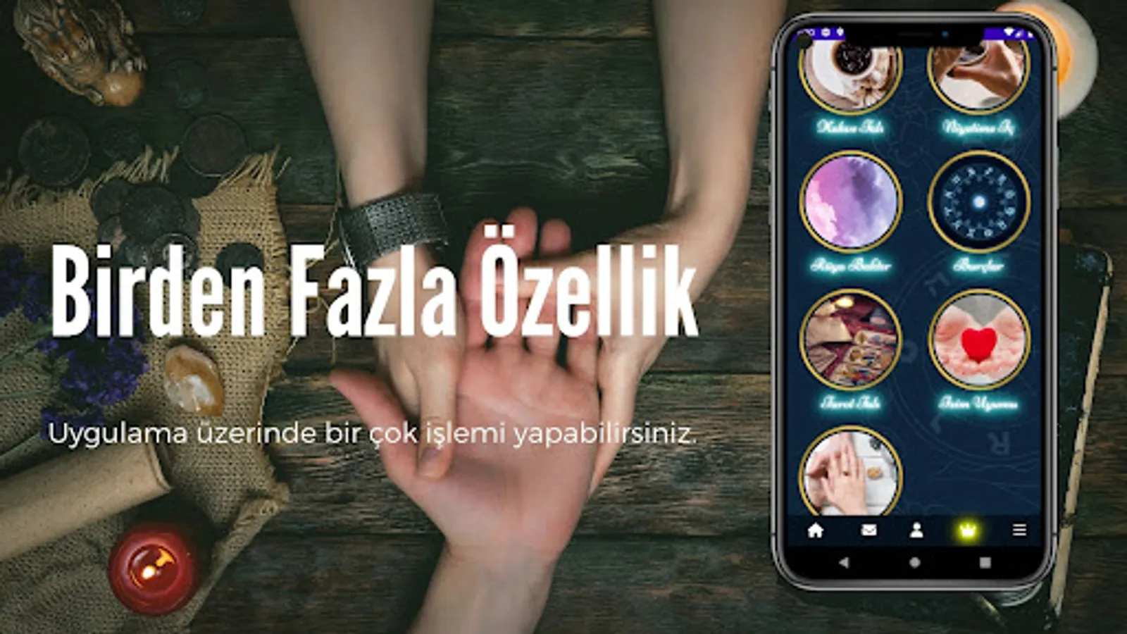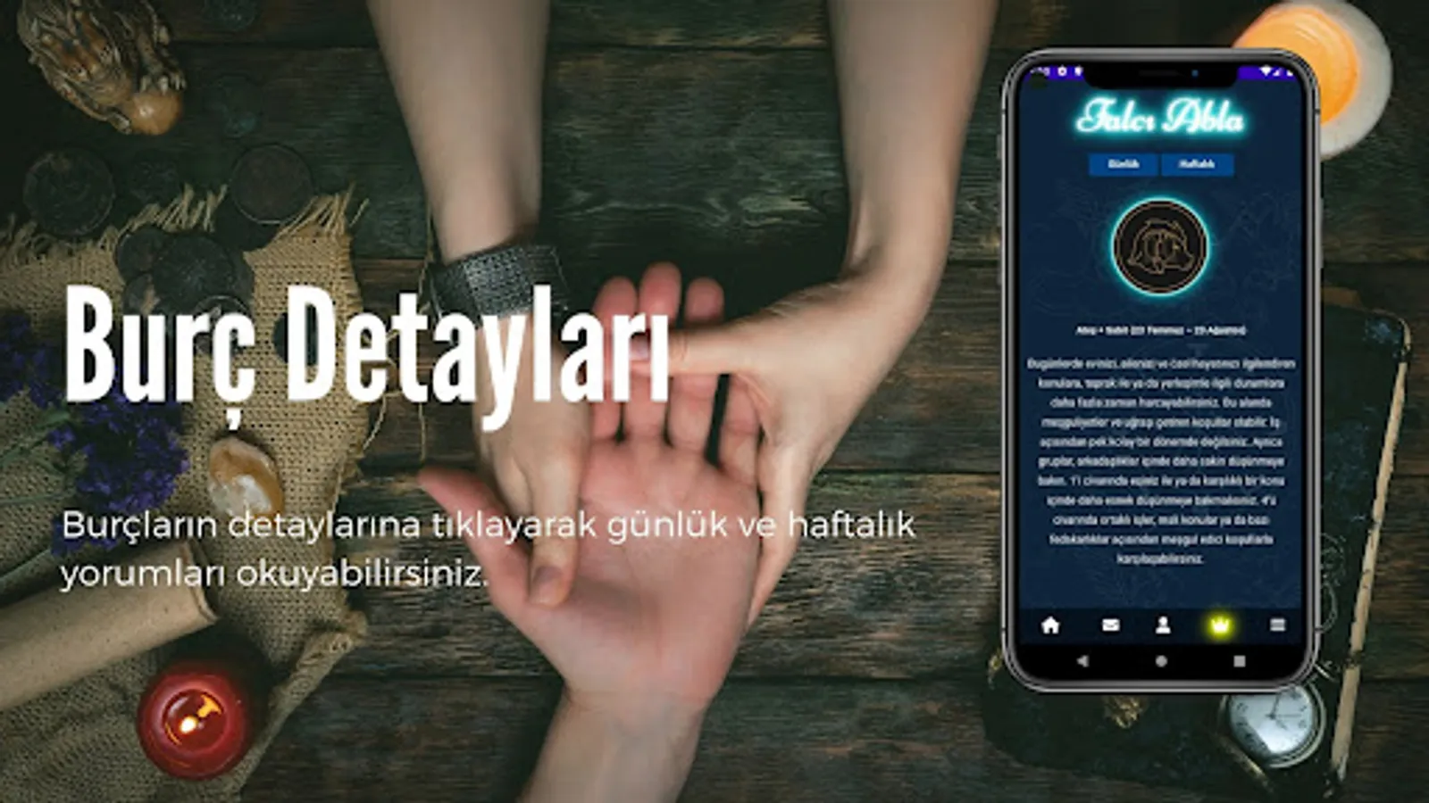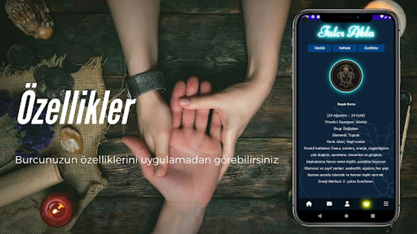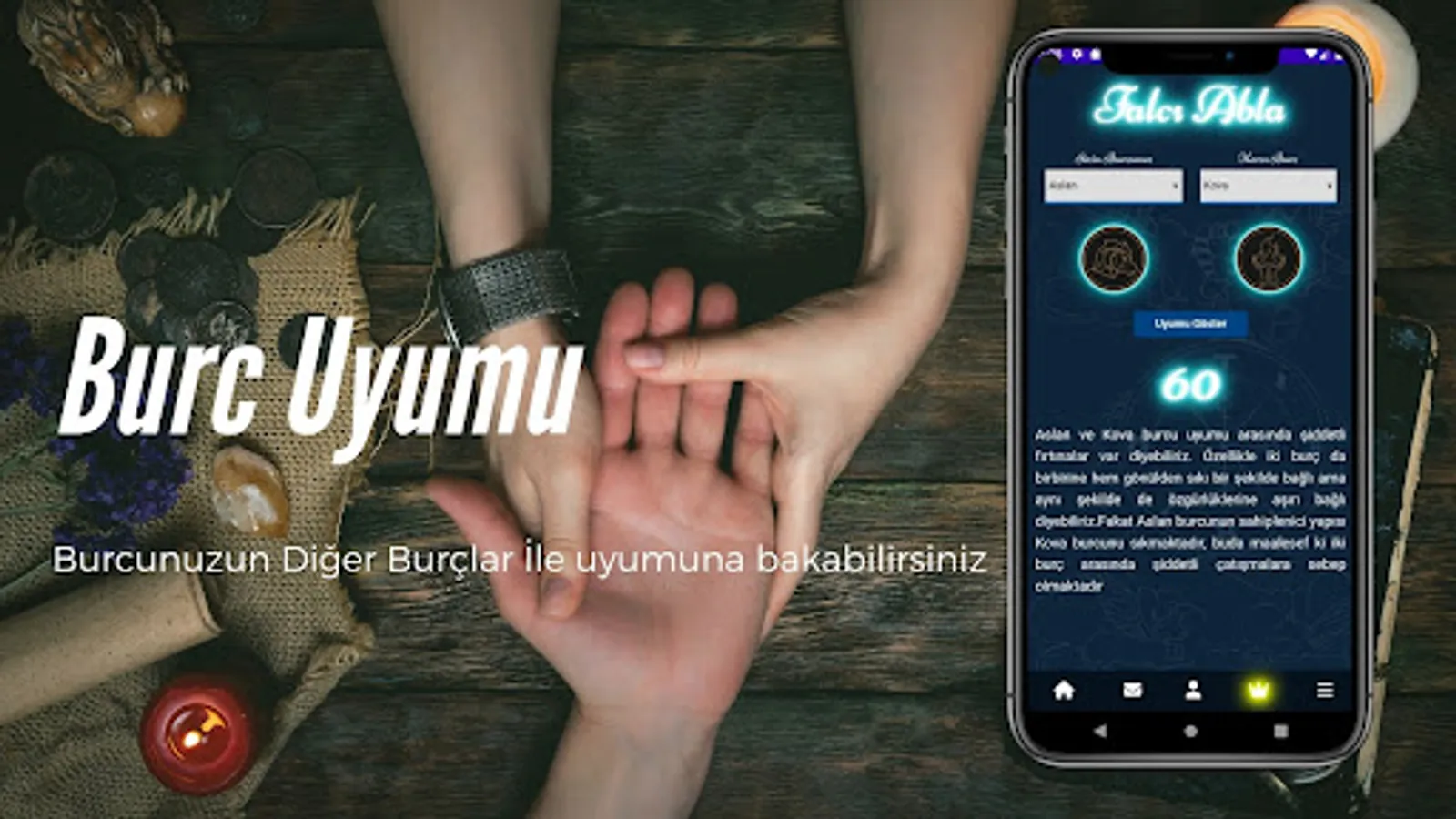 You can read the horoscope interpretations from the palmistry application and examine the compatibility ratios of the horoscopes.