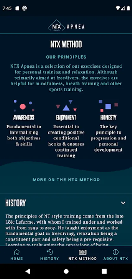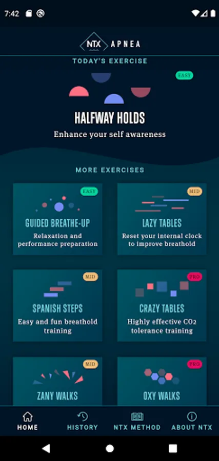 NTX Apnea is a complete freediving training system for improving breathold, awareness and relaxation. Exercises target different aspects of training (e.g. dive reflex, breathold under stress, CO2 tolerance, self awareness, etc.) and support a wide range of difficulty making it an ideal tool for apneists of any experience level. Exercises are richly supported with detailed instructions along with expert audio and video guidance.