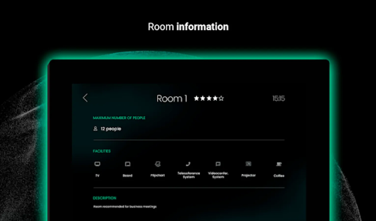 Zonifero Room Reservation is an application dedicated to manage room booking. It can be display on mobile apps as well as screens and tablets in front of conference rooms showing their occupancy and schedule. The application is integrated with Office 365, Exchange and Gsuite systems and their calendars to effectively manage employees' time as well as rooms usage."