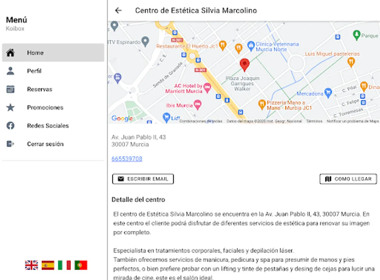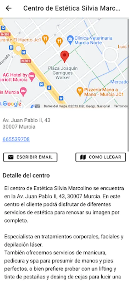 The Silvia Marcolino Aesthetics center is located at Av. Juan Pablo II, 43, 30007 Murcia. In this center the client can enjoy different aesthetic services to completely renew their image.
