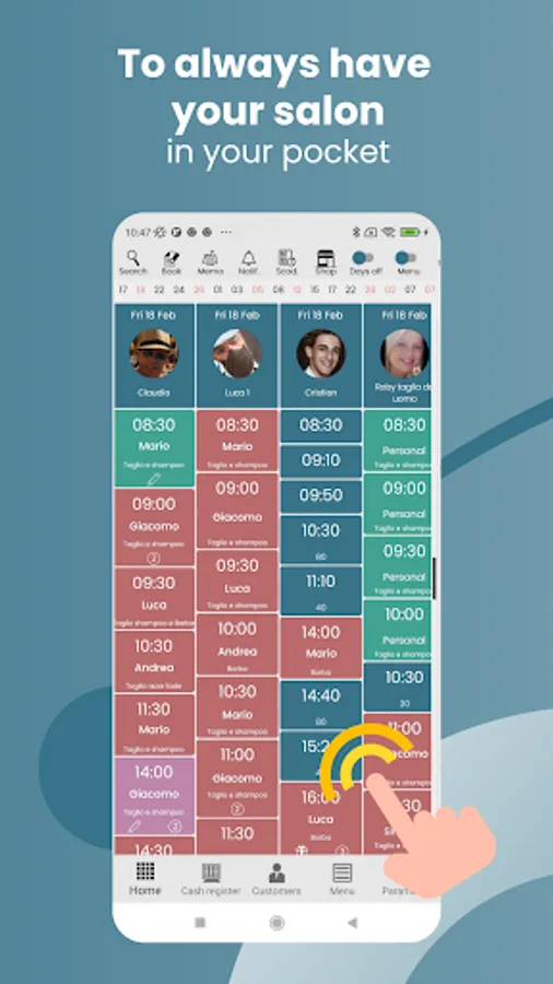 BookApp Business allows your customers to book effortlessly and allows you to work without always receiving phone calls. It's simple: download the management system, sign up and follow the steps needed. Then you'll be ready to receive appointments anywhere, via PC, tablet or smartphone!
