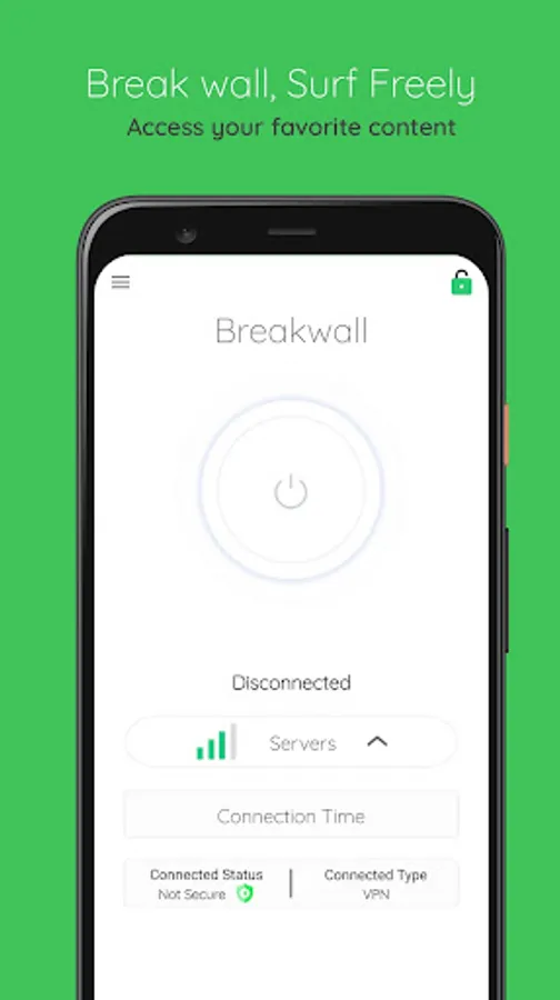 Our app is backed with VPN servers available throughout the world and lists them in app country wise, Breakwall is best free vpn for android and we let the user choose country and VPN server according to their location and connectivity.