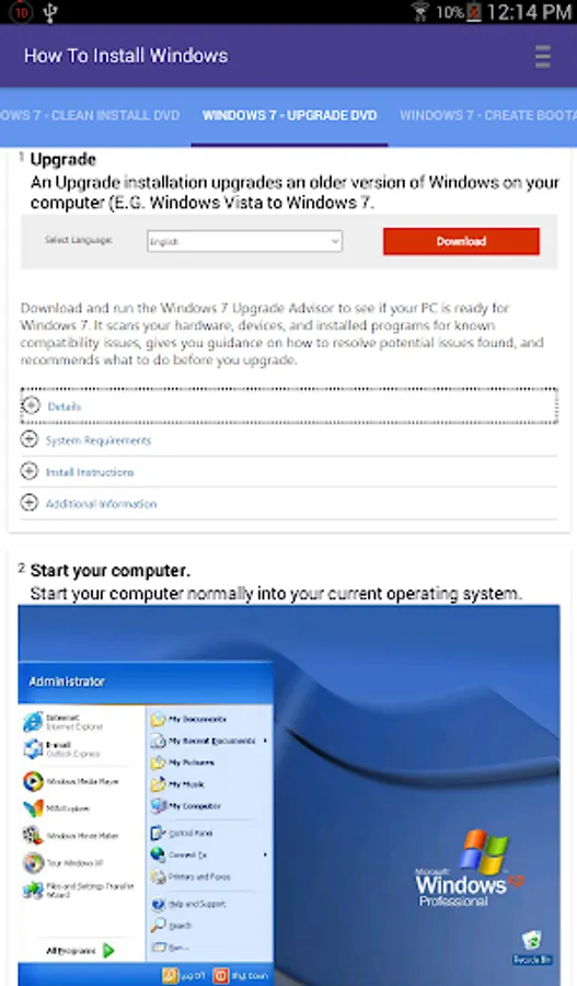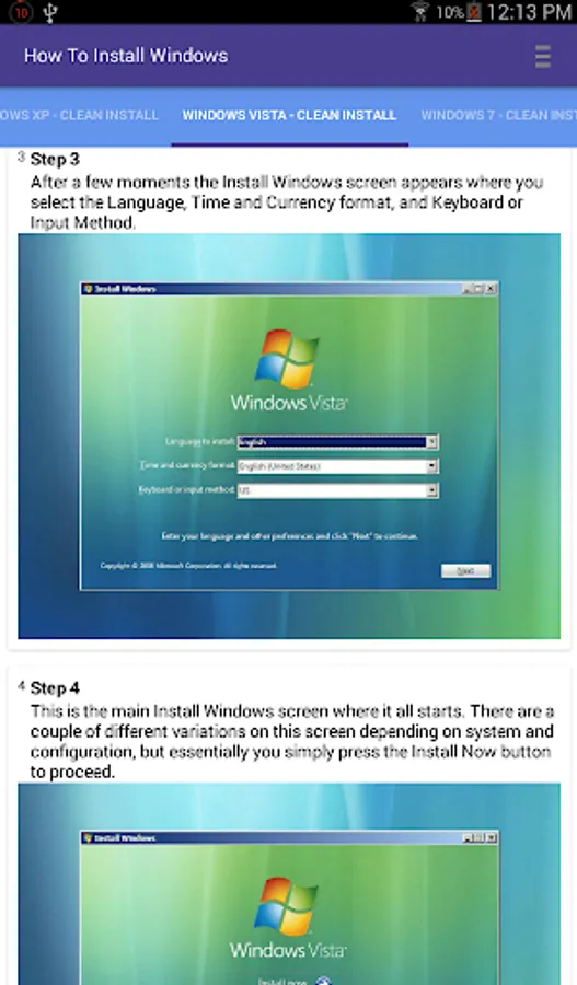 How to Install a Windows Operating System.This is operating system tutorial app which shows Step-by-step Guides
