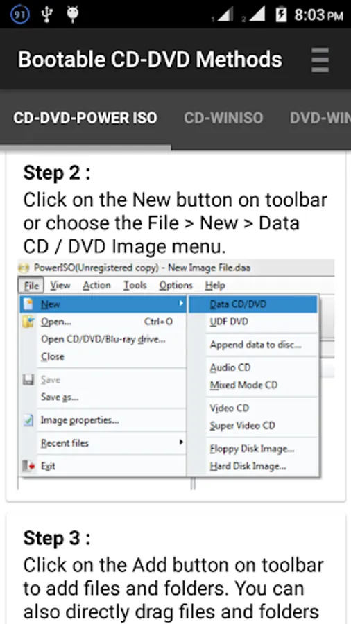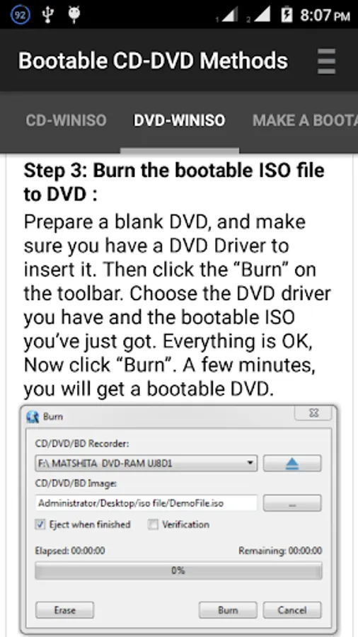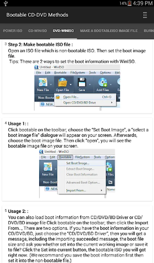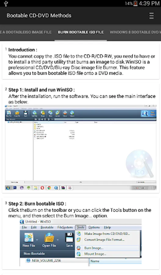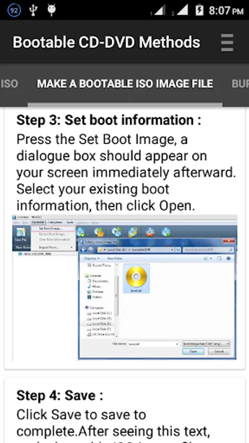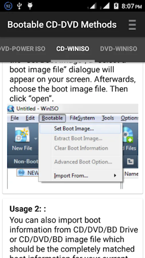 It is a tutorial app which shows us how to make,bootable CD-DVD, bootable sd card,bootable usb,software update.