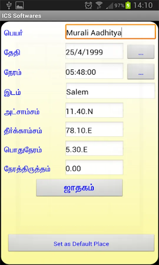 Based on Thirukanidha Panchangam, We can calculate Horoscope in Tamil with full details of Astrological Calculations.