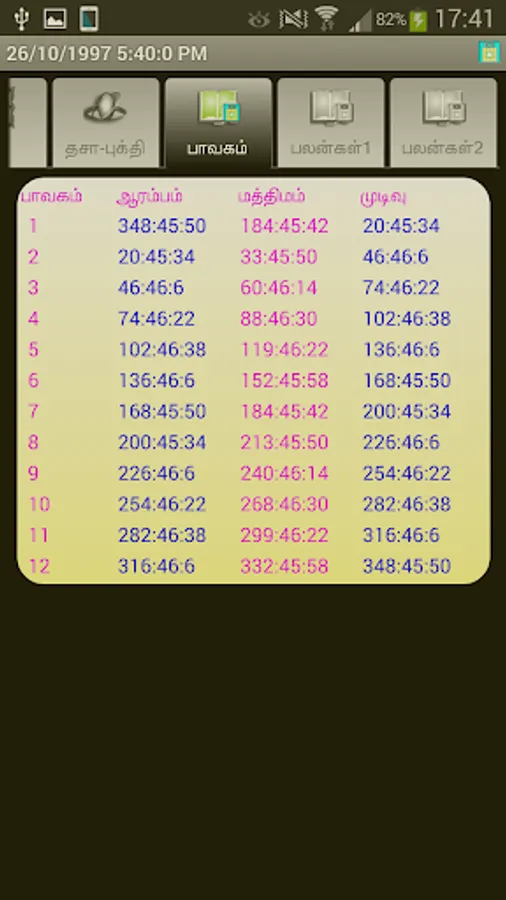 Dasa Varga Charts Calculations,