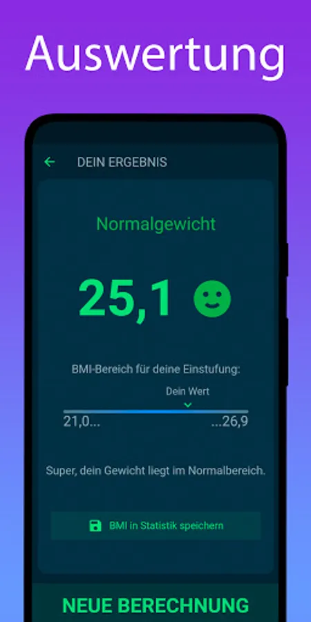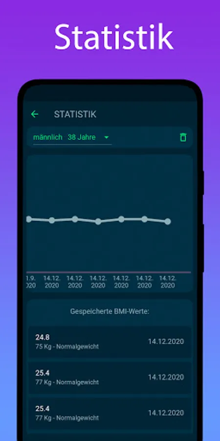 You can save your calculated values ​​in the statistics in the BMI calculator and keep track of things even over a longer period of time.