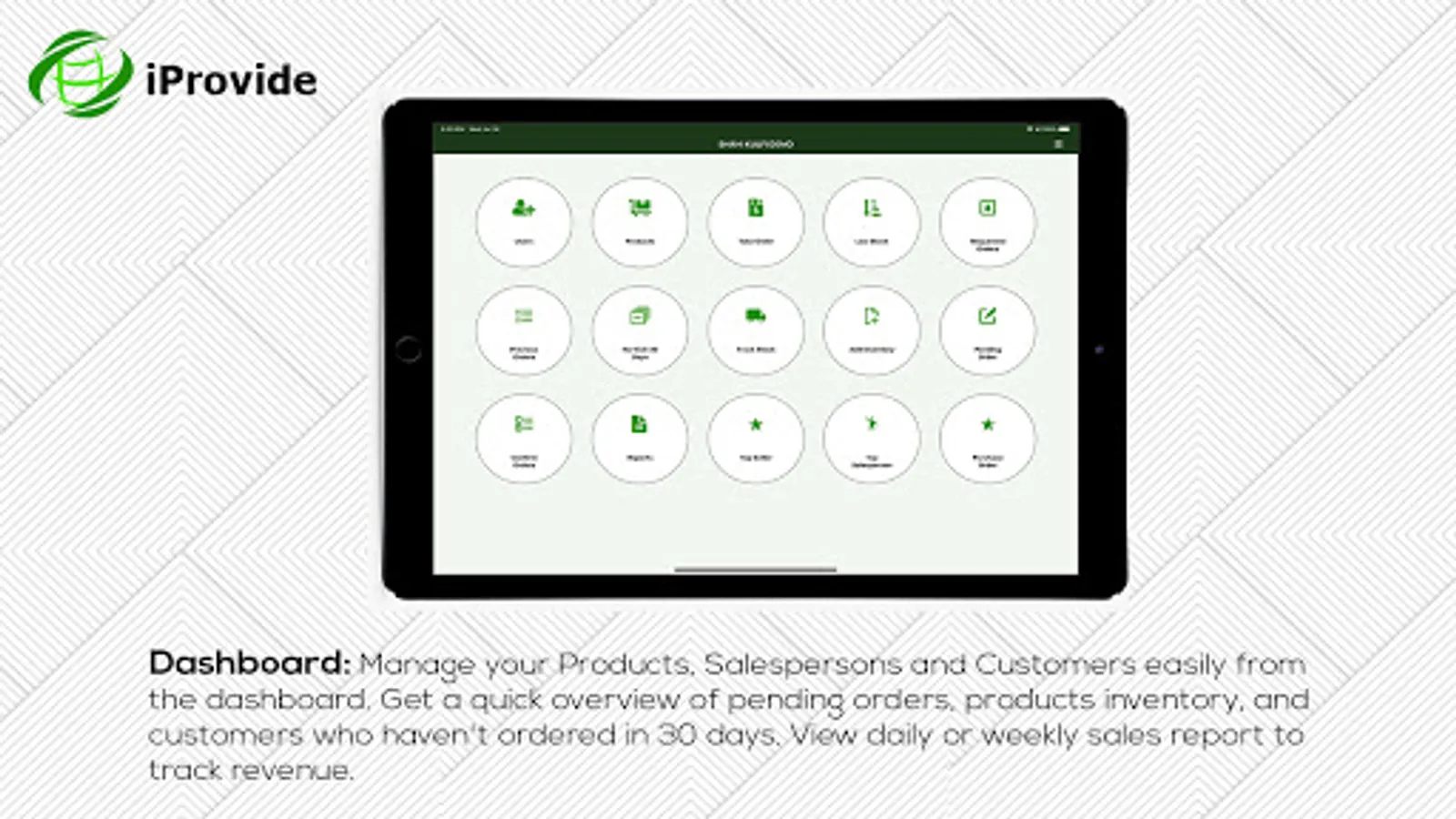 iProvide is the application used for managing the distribution network of goods to stores and outlet. In this application you can add and track your drivers, products, customers, and take orders as well.