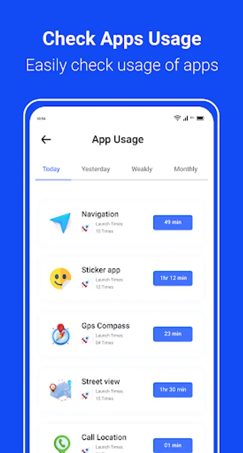 You can keep track of your daily app usage. App usage feature displays the usage time of each app and shows which app you use most and for how long.