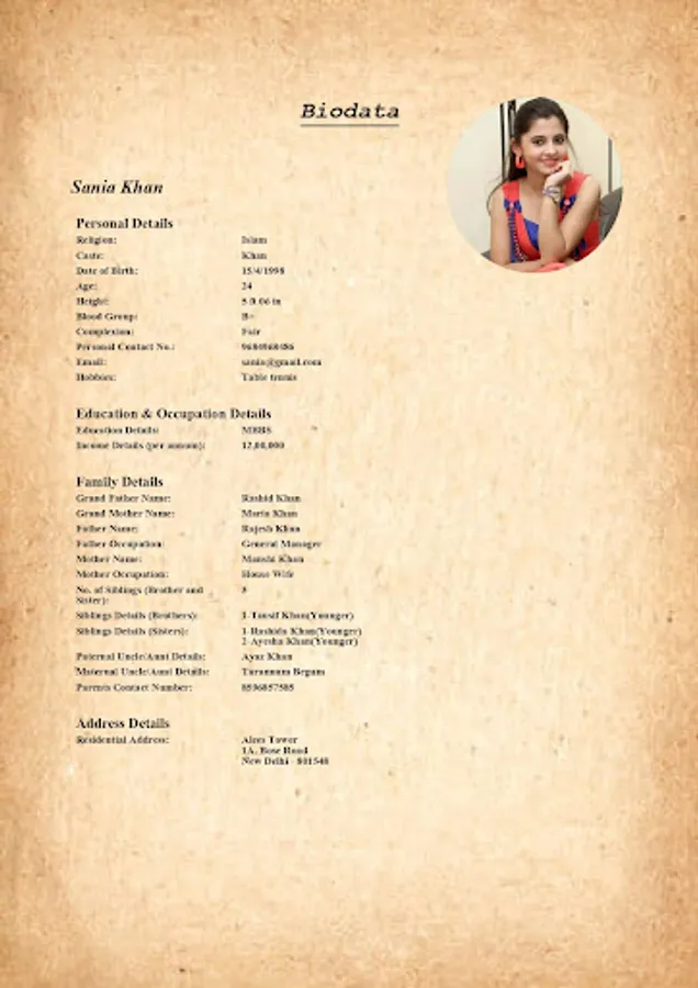 This Muslim Marriage Biodata Builder app quickly creates your bio data according to select your optional and mandatory fields and if you want to email your bio data just save your bio data in PDF/Images and email it.