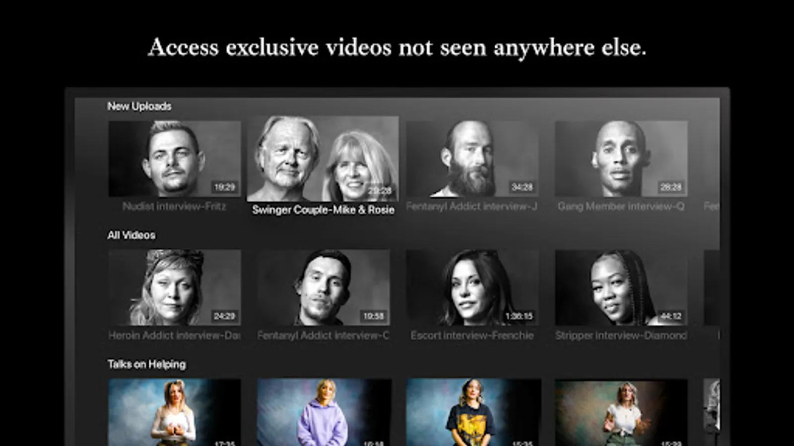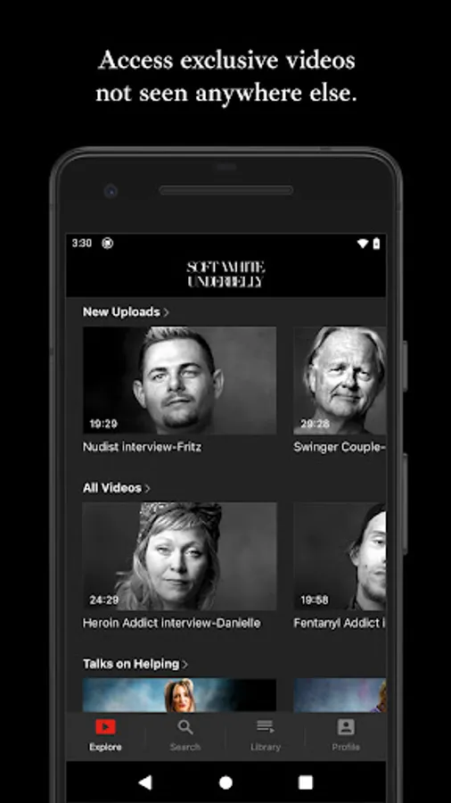 The Soft White Underbelly app features ad-free uncensored videos and well as many exclusive videos that can only be seen on this subscription version of SWU.
