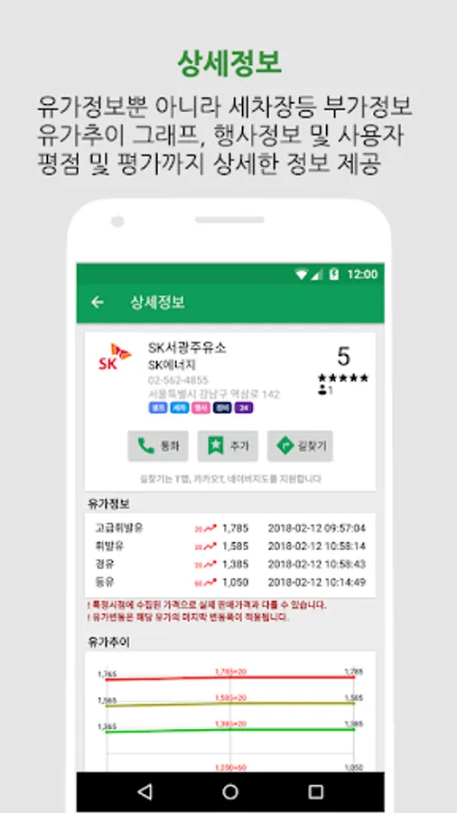 • You can check users' ratings and evaluations on the gas station (charging station) detail screen, and you can share useful information with other users by writing your own ratings and evaluations.