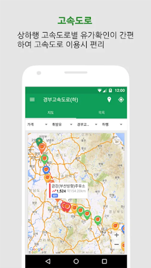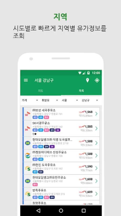 • In the list, information of gas stations (charging stations) at a glance (quality certified gas stations, pole-refinery brand, name, address, price and distance, price fluctuation, direct management, self-service, event, car wash, light maintenance, 24-hour operation, convenience store, favorite , McDonald's, Lotteria) can be checked.