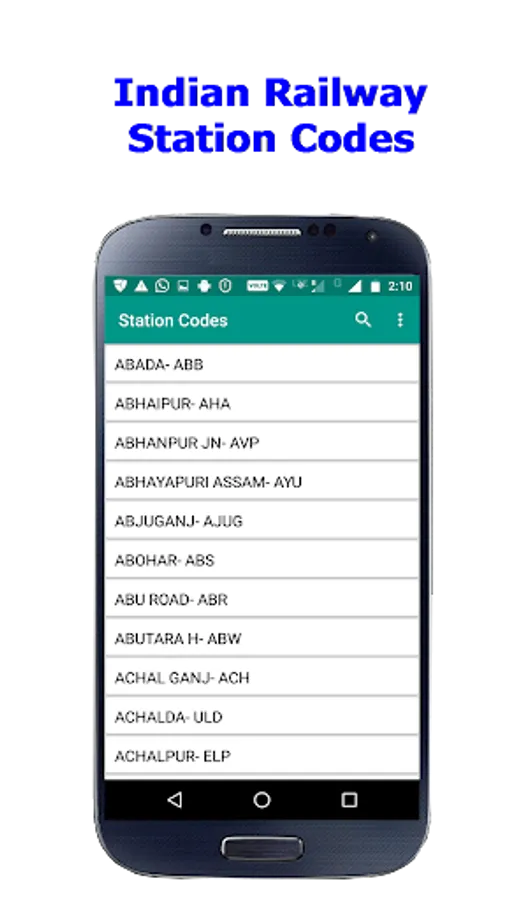 This App consists of all Station Codes of Indain Rail. A search box provided to search by name or code.