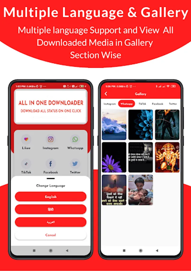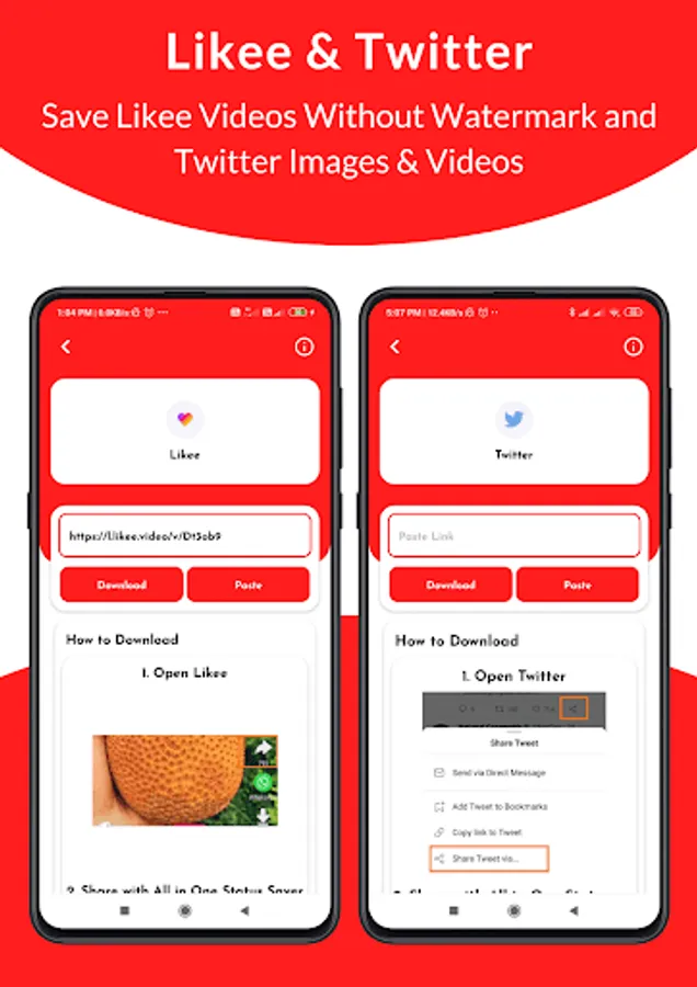 You can Save Facebook, Insta, Whatsapp Stories and TikTok, MxTakaTak, Moj, Josh, Chingari, Mitron, Sharechat, SnackVideo, Roposo, Likee, Whatsapp, WA Business, Twitter, and Instagram Videos and Images, Reel with All In One Downloader without watermark.