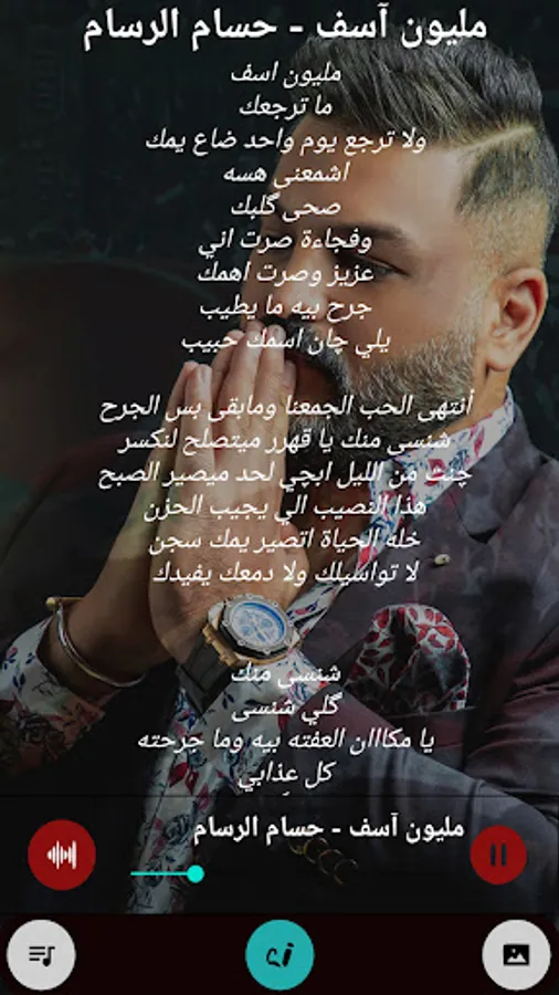 • With all the pictures of Hussam Al-Rassam, you can change the background image of the application