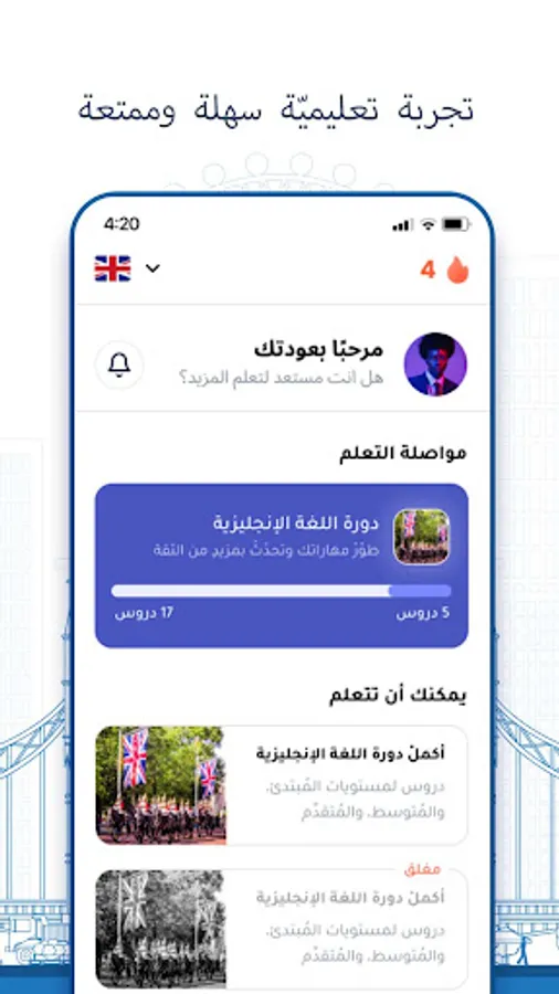 The "Lisan" application provides entertaining activities and challenges that help develop reading, listening and pronunciation skills, and facilitate the establishment of new vocabulary for the learner. It also provides each user with the freedom to choose the study format and level most appropriate for him, and the ability to learn everywhere and at any time.