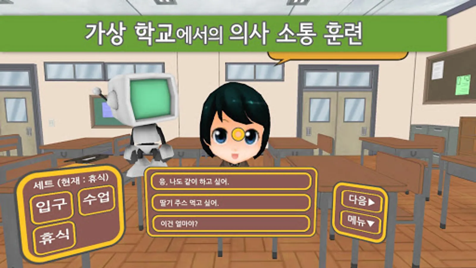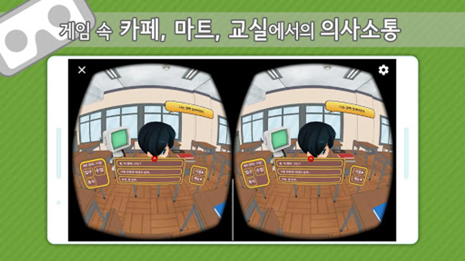 ■ "SOLVE 의사소통"은 학습및 발달자애 학생들의 의사소통훈련을 도와주는 가상현실(VR) 한글 언어 어플리케이션입니다.