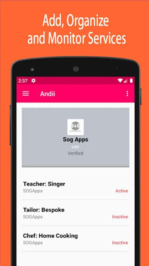 With Andii local app for services you either Offer or Request Services like Charitable works, Beauticians, Cleaners, Chefs, Tailor, handymen and many more. The local app you must-have!