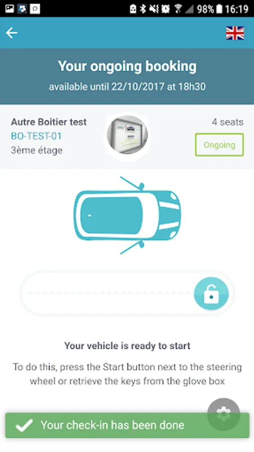 - A single solution for customer’s journey: registration, booking, geolocation, vehicle opening, check-in/out