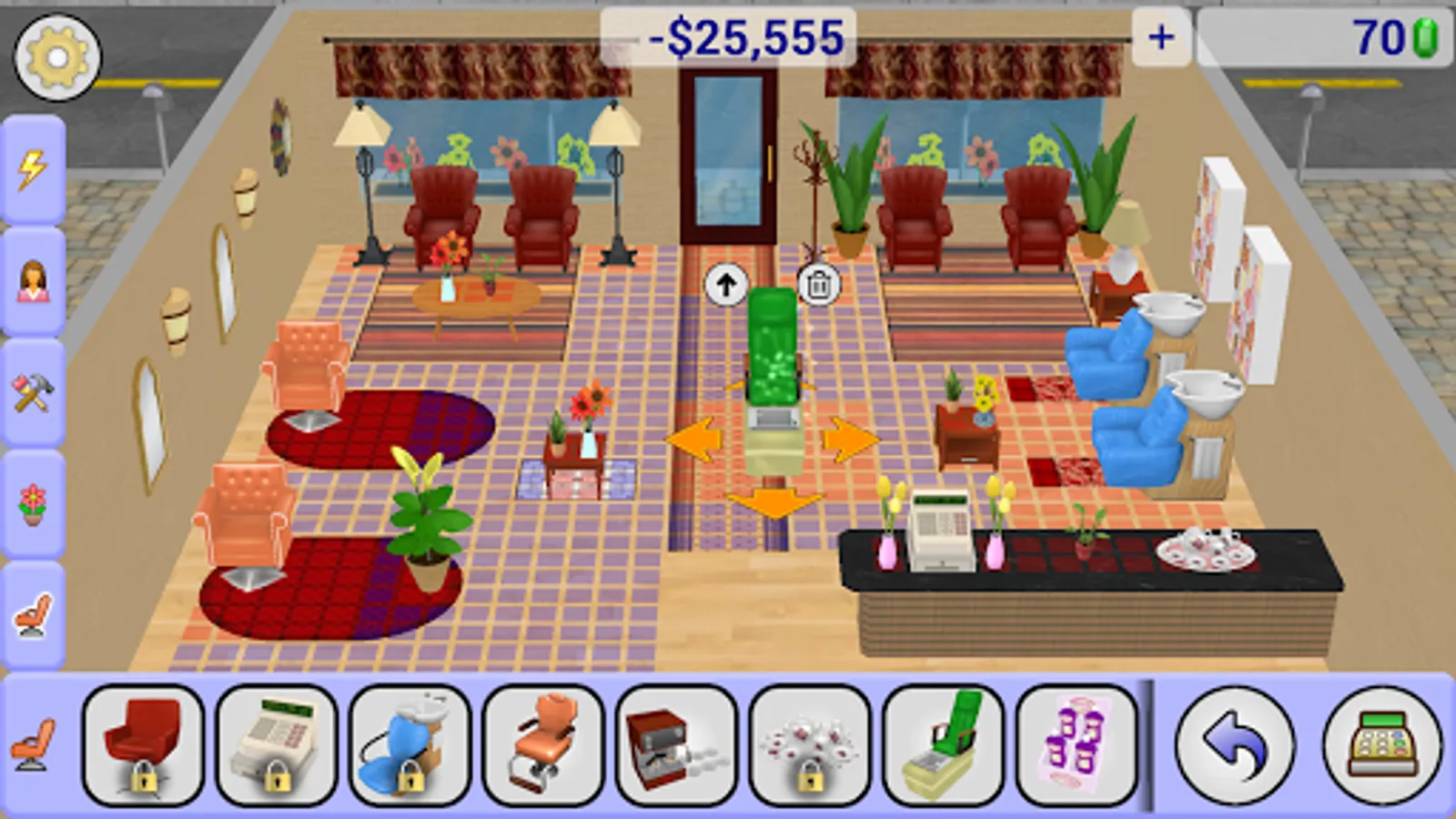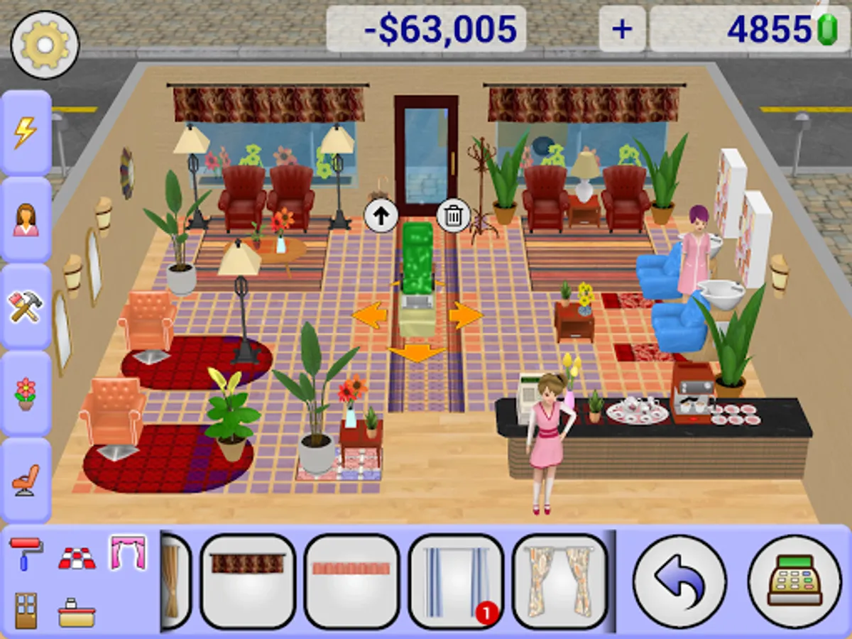 INTERIOR DECORATING: Design your shop by placing salon stations where YOU want them. Then, beautify your shop with decorations and improvements.