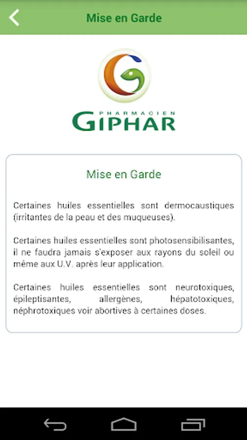 AromaFiches is an application for viewing offline the aromatherapy practice sheets you (different essential oils, what are they, how to use, the precautions ...) published by SA Cooperative Giphar at http: / /www.pharmaciengiphar.com.