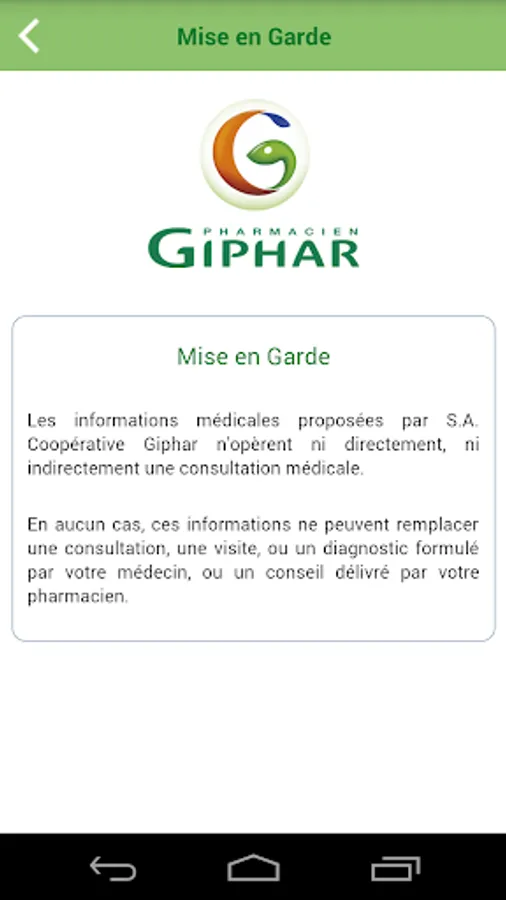 The proposed SA Cooperative Giphar medical information not operate directly or indirectly for medical advice. In any case, this information can not replace a consultation, a visit or a diagnosis by your doctor, or advice from your pharmacy.