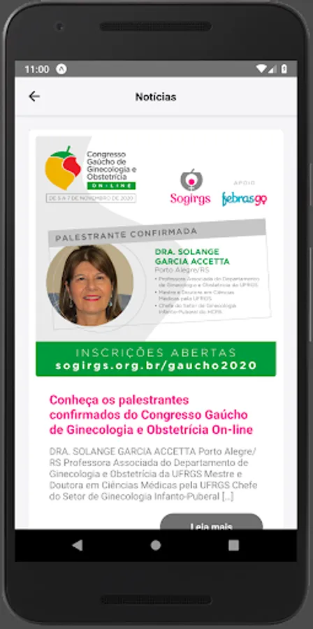 The Sogirgs application offers in its features, gestational calculator, events, videos and news from Sogirgs.