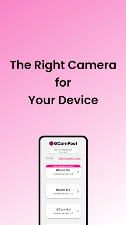GCamPool lets you choose the right camera for most devices. Choose the right camera for you according to the make and model. Or choose one of the suitable versions recommended for you specifically for your device. Find the right camera quickly and easily.