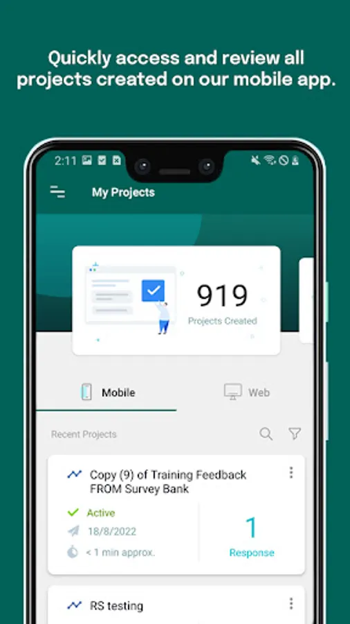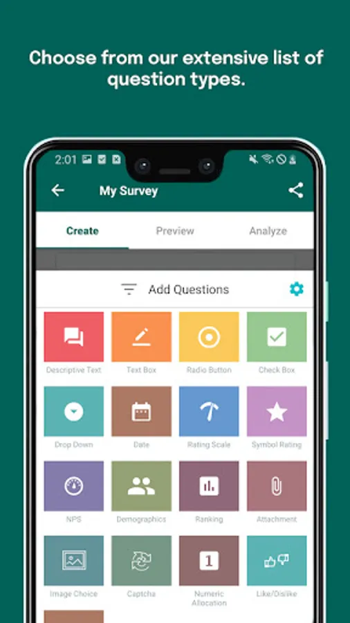 Creating a survey is now just a few taps away. Start from scratch, or use a template from our Template Bank. Our intuitive interface and variety of question types makes it easy to build and launch meaningful surveys quickly.