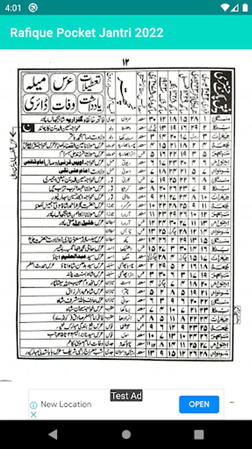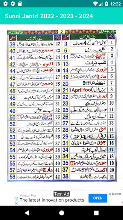Sunni Islamic Jantri with Urdu Islamic Calendar.
