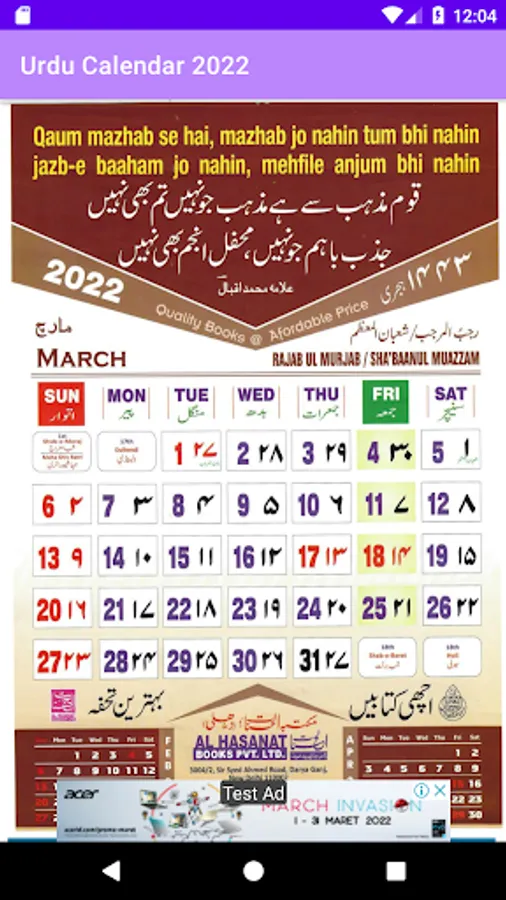 For our Islamic and Muslim culture, the Urdu calendar 2022 is a very useful app for deciding the right days for all Islamic months. It includes unique details for every Islamic month. It still has months to follow, this urdu calendar is also known as the English calendar.