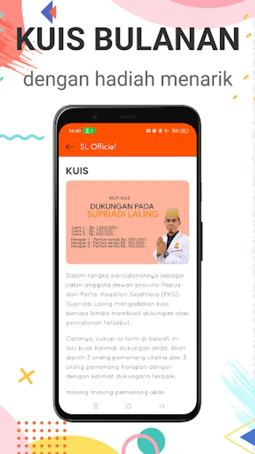 Equipped with various features such as activity information, absorption of aspirations and monthly quizzes which of course will make you closer to and know Supriadi Laling
