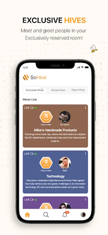 Exclusive, Group and Open Hives enable eCommerce! Simply invite your followers to a Hive via the invitation feature, and WOW them with conversational interaction or visually inspiring content. Sell your goods more easily by not only talking to your customers about your products but SHOWING them specific features like color or size or quality.