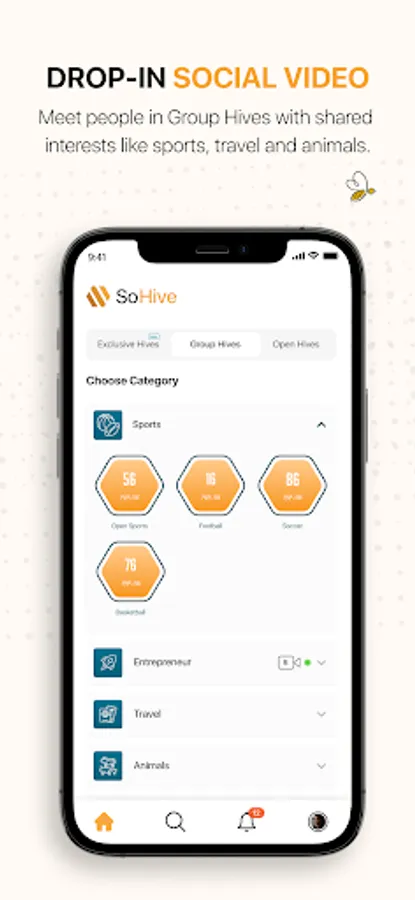 Group Hives continue to offer drop-in video sessions for specific topics, to help you connect via video and/or audio with those who share your interests. Pursue the WIN with your Fantasy Football team by dropping into the Sport/Football Hive; provide a virtual tour and share your amazing travels with others who drop in to watch via the Travel/Virtual Tour Group; and let your pets meet each other by dropping into the Animals/Pets Group! There’s more! Rock it out with others in the Music/Karaoke Hive, share cooking techniques by dropping into the Food and Drinks/Cooking Hive, and help others with your Do-It-Yourself skills via the Home Improvement/DIY Hive. Group Categories include Sports, Entrepreneur, Travel, Animals, Music, Food/Drinks, Education, Home Improvement, and Movies.
