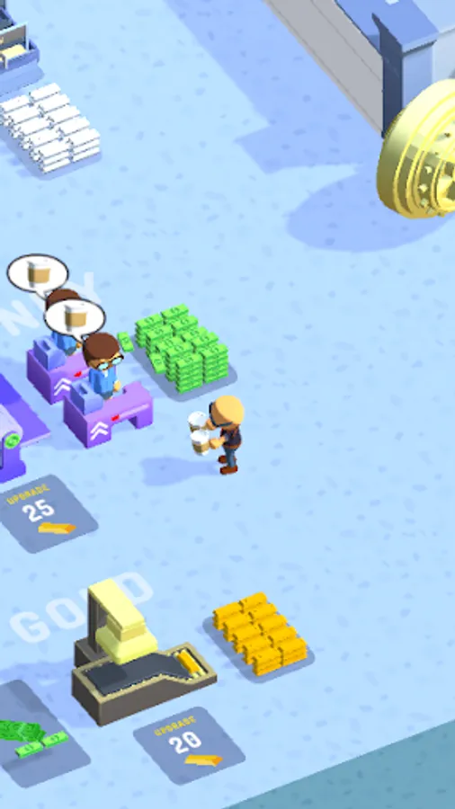 Hire employees, buy machines, mint money, upgrade facilities and BOOM! LEVEL UP.