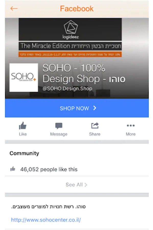 You can also see the SOHO Facebook page directly from the application.
