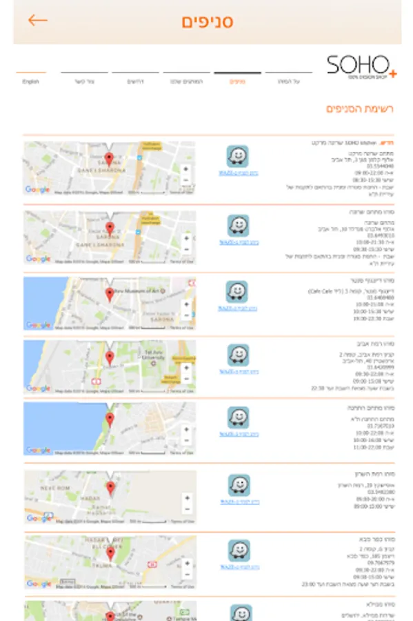 In the app you will find a list of the chain's full branches and their locations on the map, opening hours, the ability to easily navigate to the branch you have chosen and call the branch.