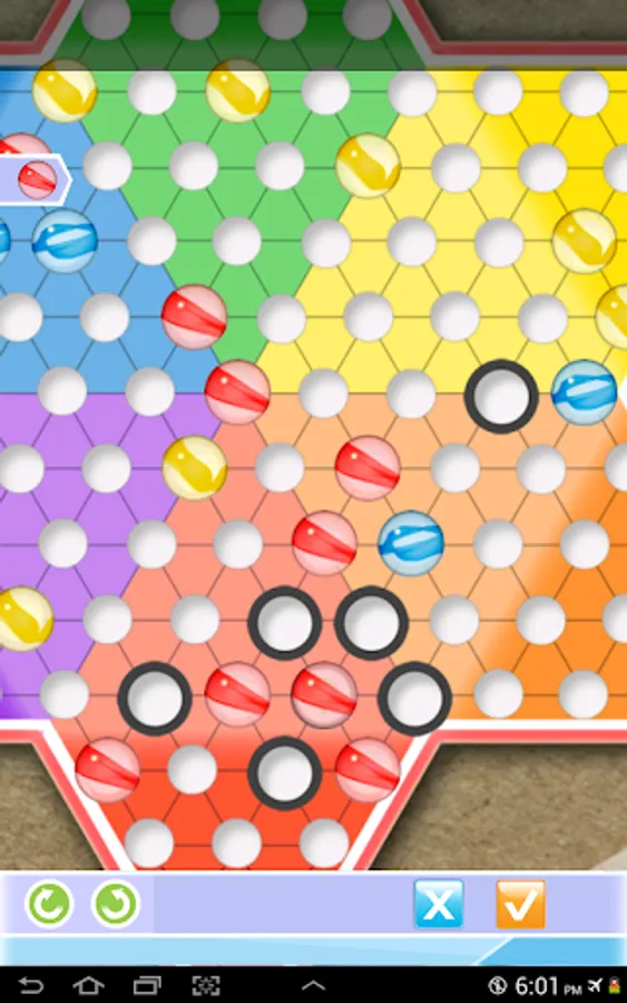 The object of the game is to move all your chesses/ marbles into the point of the star directly opposite your home point. The player that does this first is the winner.
