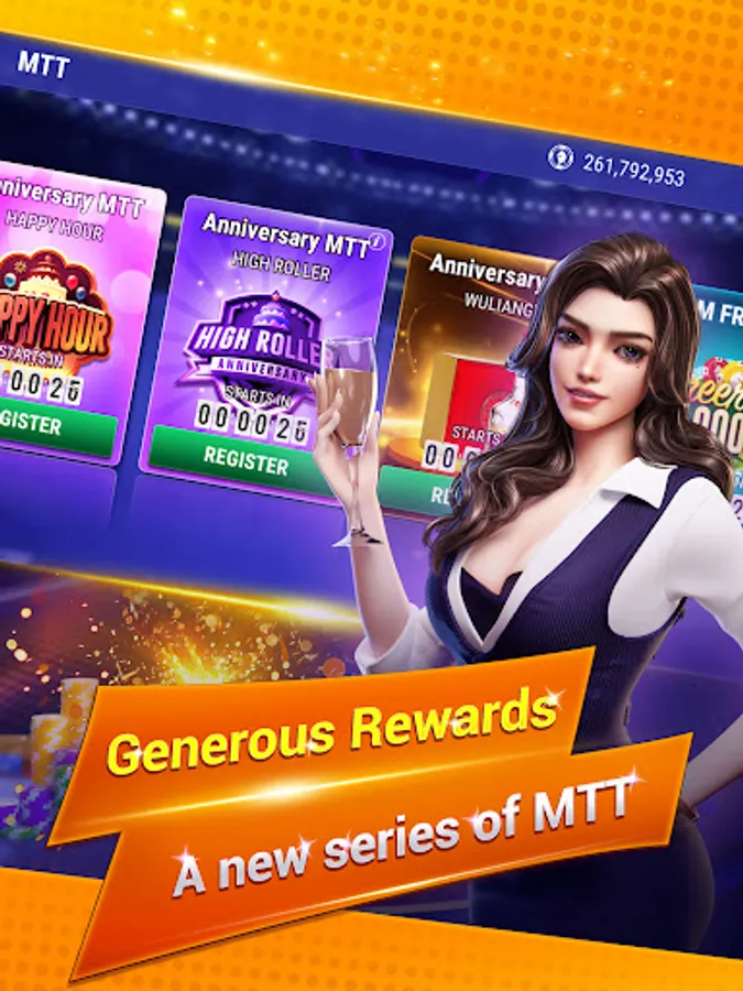 ● League every three days: Win the most chips during the league to be on top of the chart and win huge prizes! You are automatically participated just by playing Poker! The higher league level you are, the more rewards you will get.