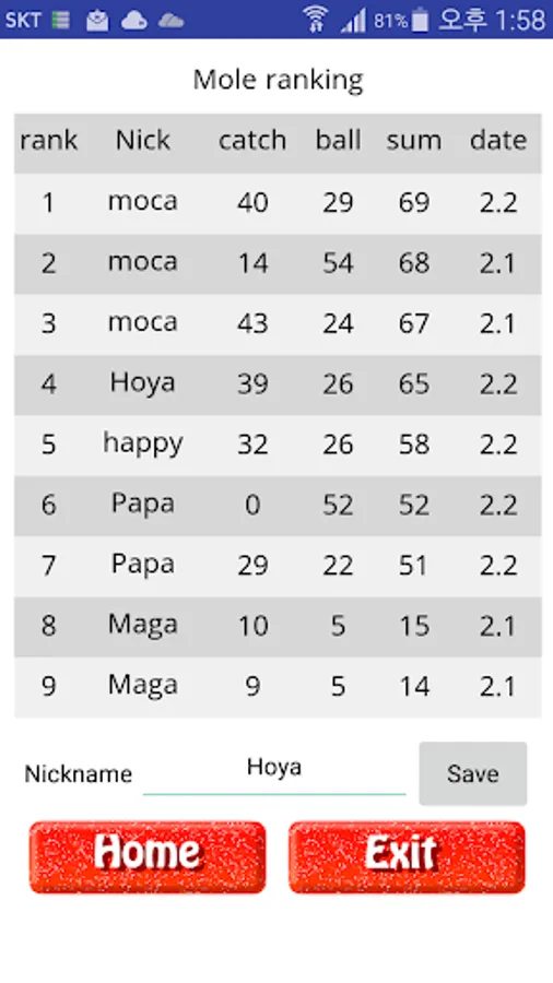 1. Mole catching: It is a 60 second game to catch by touching the mole.