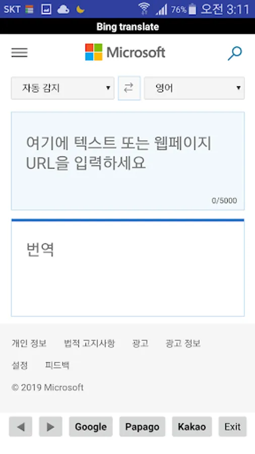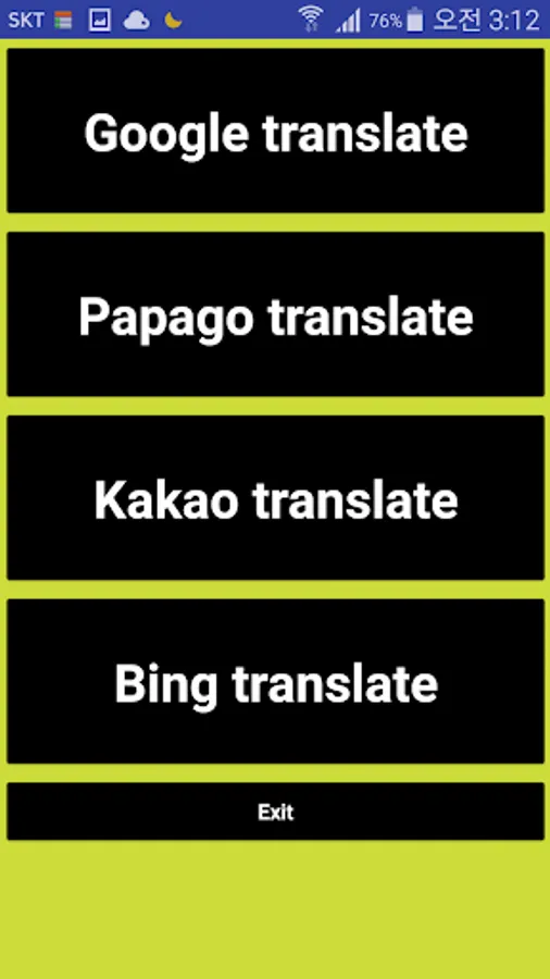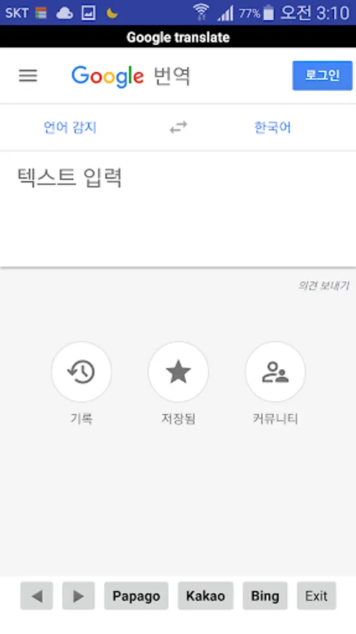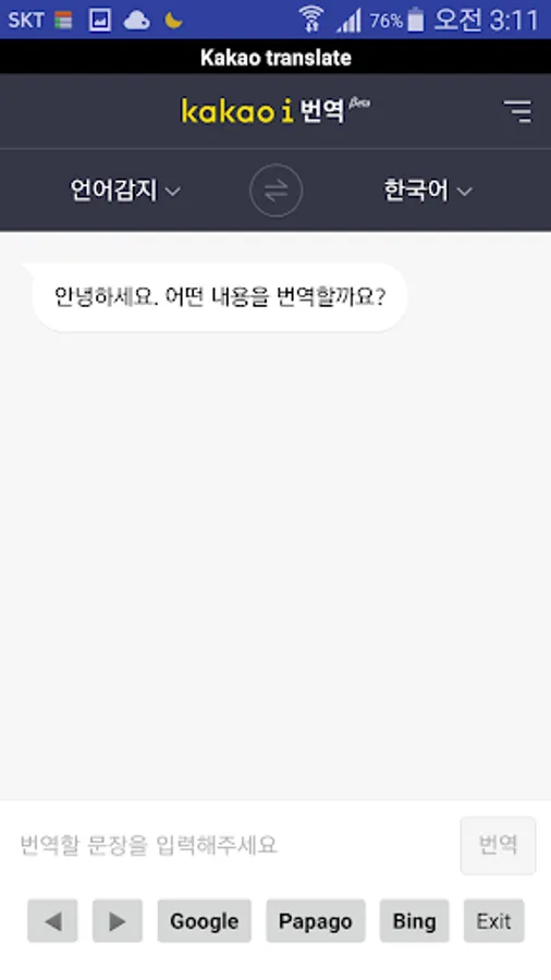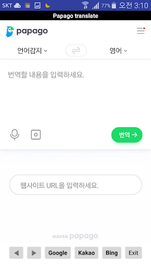 (Google translate, Papago translate, Kakao translate, Bing translate in this app.)