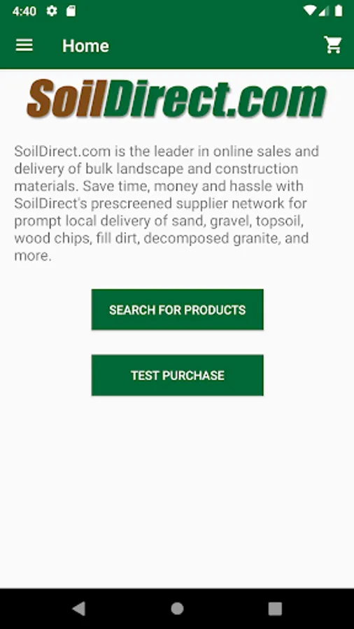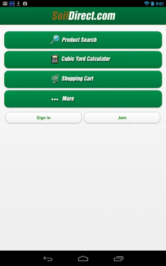 Soildirect.com official app. This app lets you purchase materials for your next job or home improvement project from this app. Ordering is fast and easy. We have even included a cubic yard calculator for your convenience to determine how much material you will need for your project. Try us out and see how we can save you time and money $$$